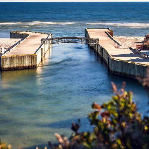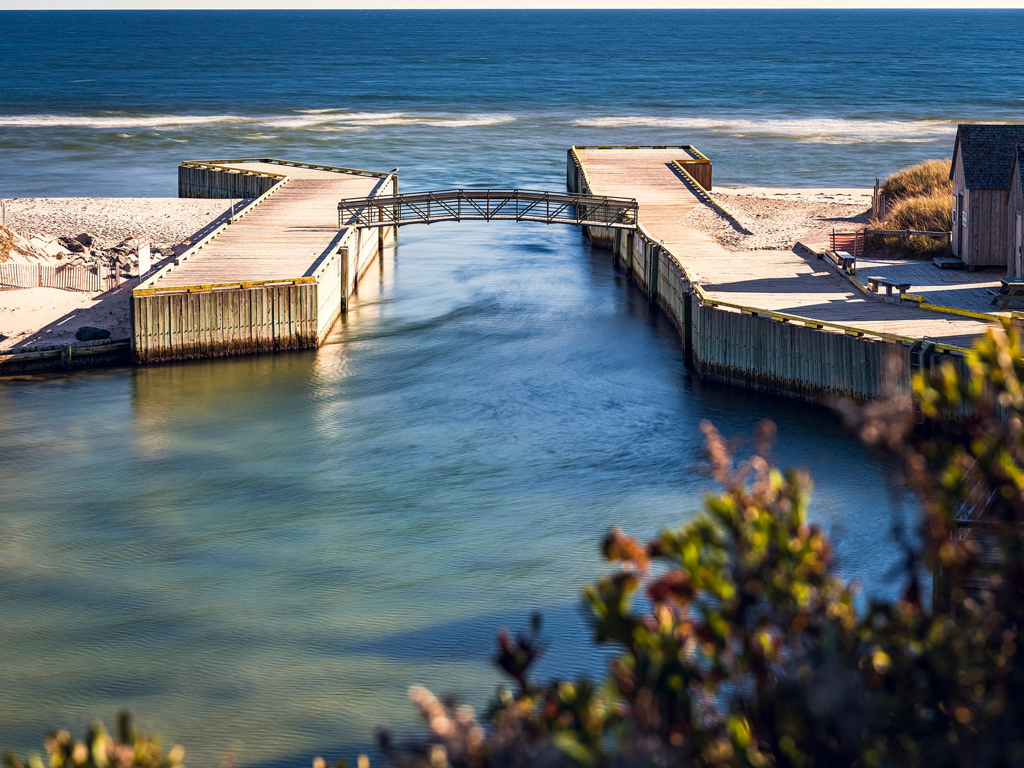 Description: The Basin Head beach bridge sits as the tide moves in and out past the popular summer destination.