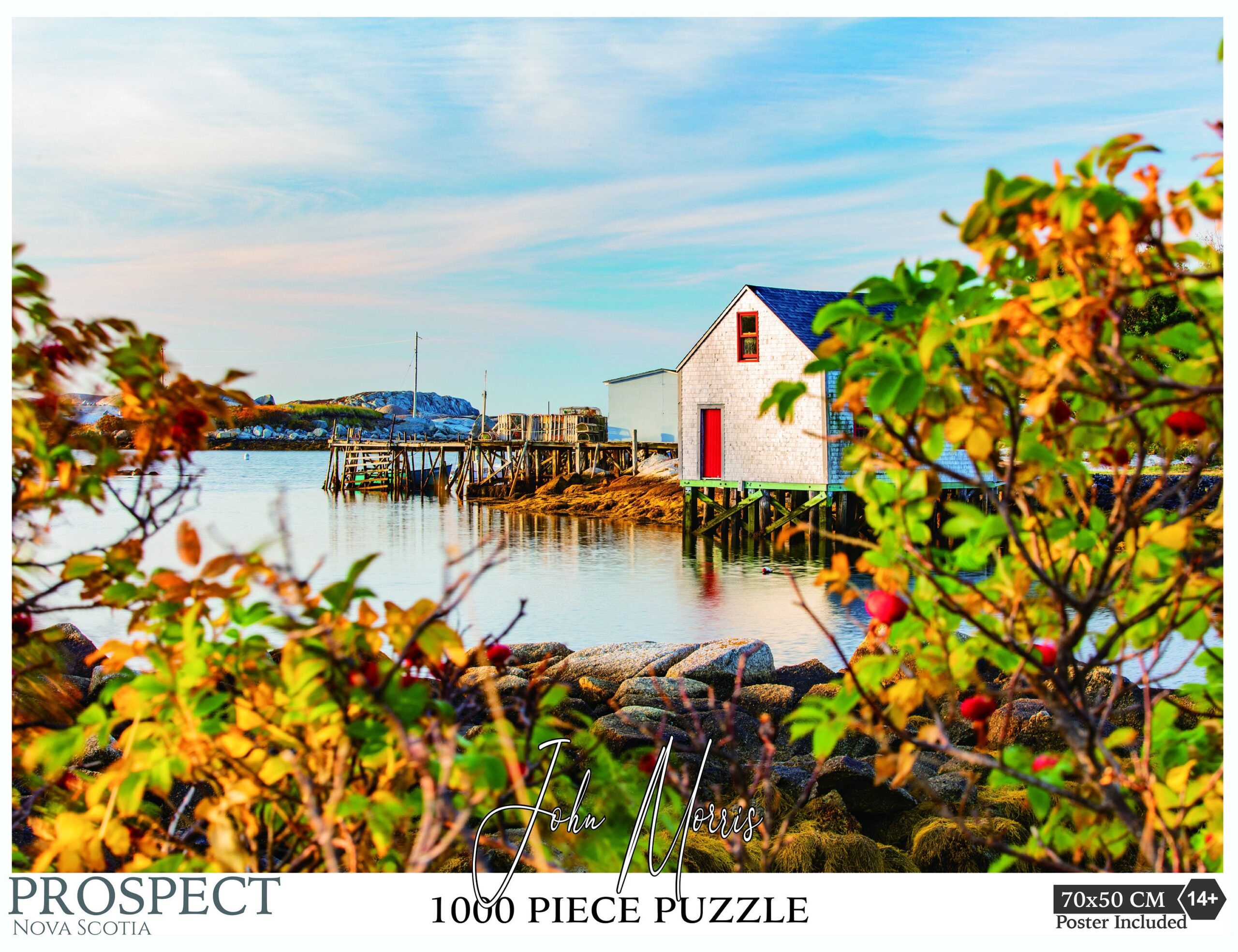 Description: After being asked about Jigsaw Puzzles for eons, I have created my first set! For mainland Nova Scotia, I went with the scene from Prospect Harbour which is South of Halifax. The box size is 14″x10″x2.5″ and is a 1000 piece puzzle. The puzzle completed size is 19.675″x27.56″ and includes a large-size poster inside.