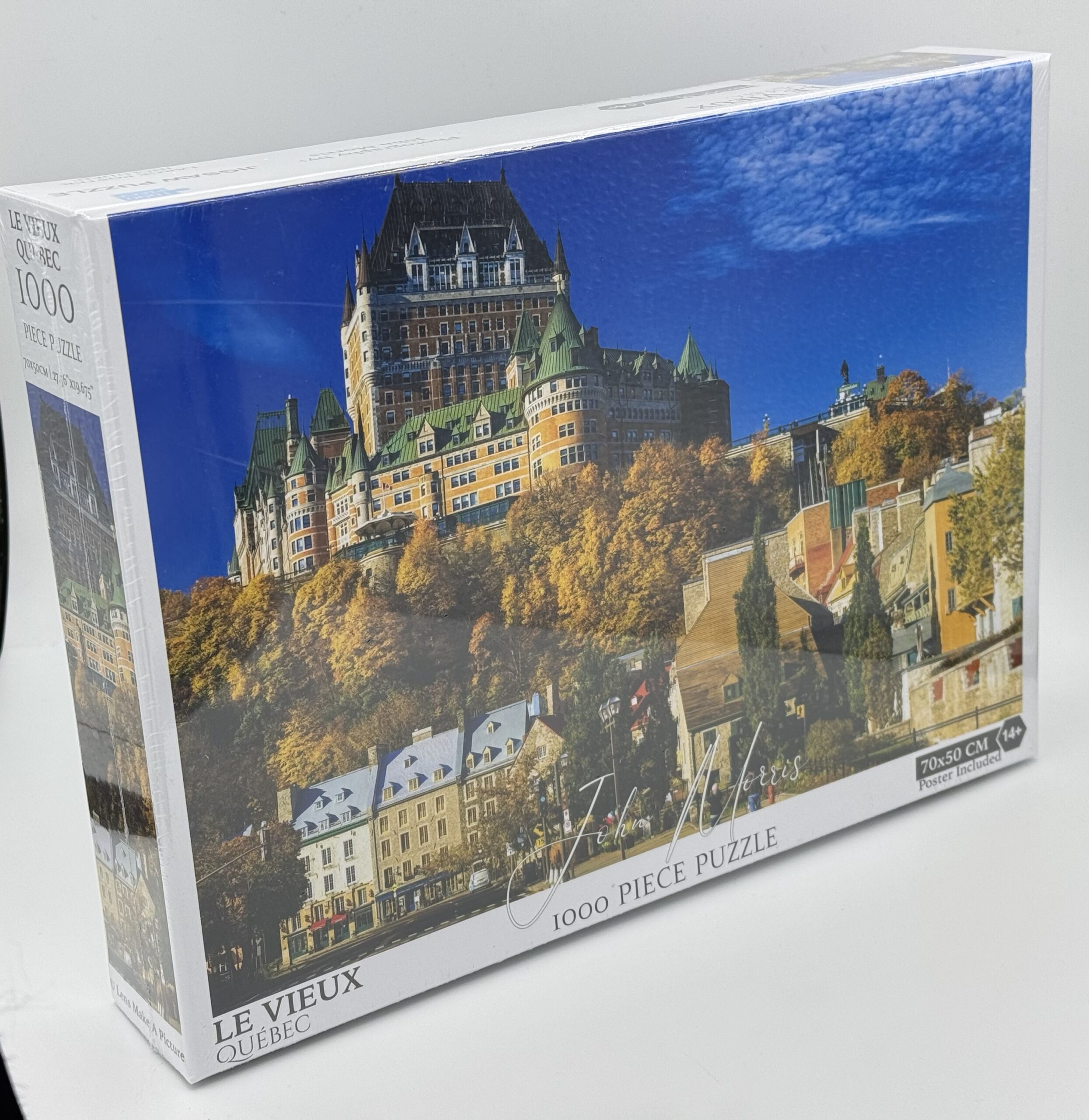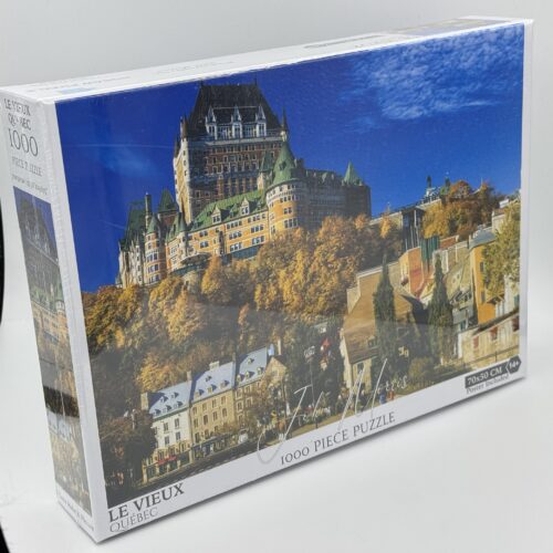 The Quebec puzzle features beautiful Old Quebec City with the Le Chateau Frontenac/Le-vieux Québec avec Le Château Frontenac.