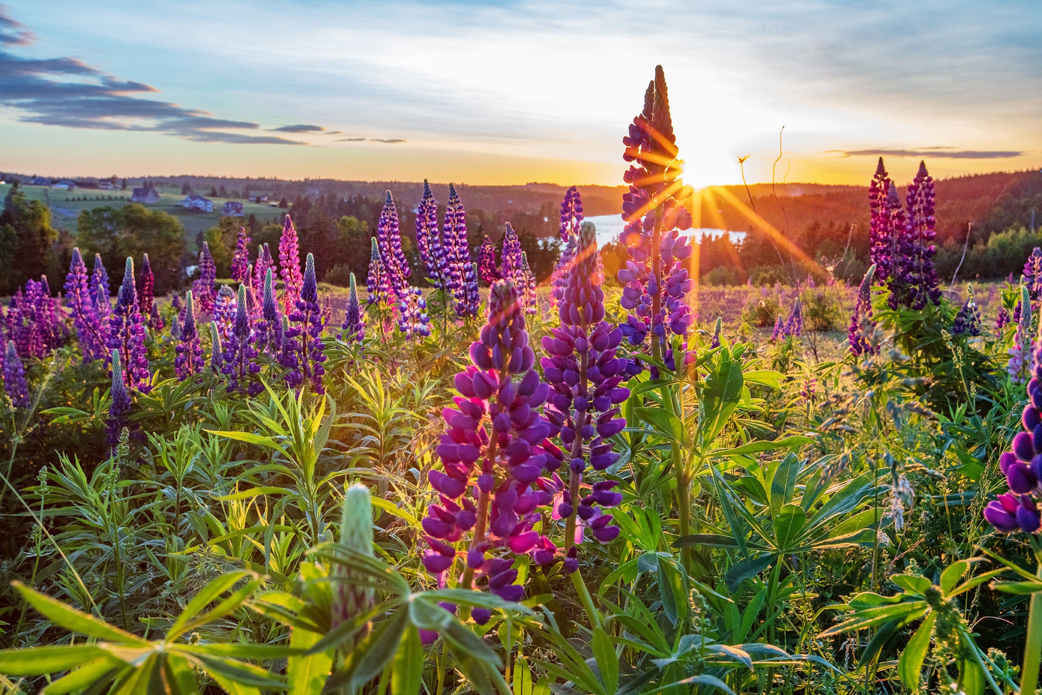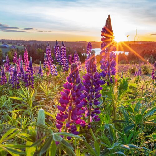 TITLE: Lupin Sunset at Trout River, PEI in Trout Riveer Prince Edward Island